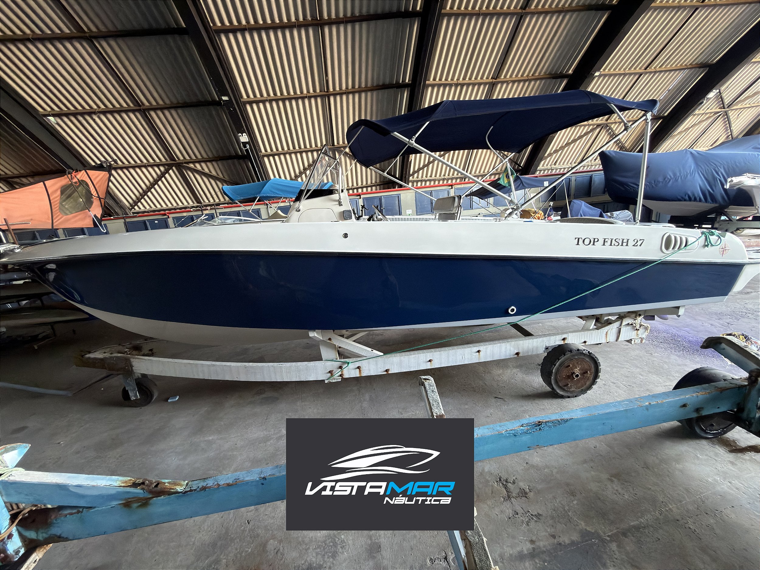ACESSÓRIOS: Salvatagem completa, piso eva, carreta de encalhe com pneus de empilhadeira, defensas, bússola, som com alto falantes marinizados, vaso sanitário, som com alto falantes marinizados, rádio vhf, gps com sonda, guincho elétrico, luz subaquática, toldo e porta copos.